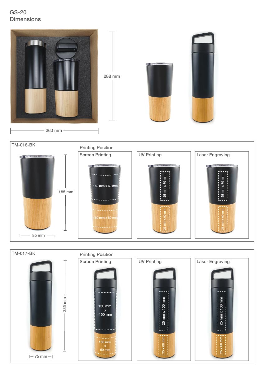 Gift Sets GS-20: Contains 2 products as listed beside and packed in a cardboard gift box with a cushion inside for product protection and presentation.