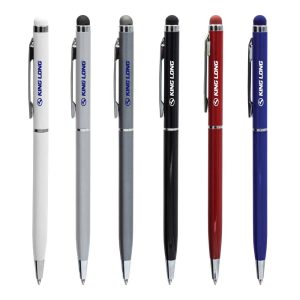 Slim metal pens with a stylus are awesome pens. They are created with a shiny metallic material. Thus, it is glossy and durable at the same time. This pen comprises a slim metallic barrel. The barrel is colorful. While the tip is silver. It’s a 2-in-1 pen. So, it comprises a ball pen and a stylus. The stylus is present at the top of the slim pen. It is of the same color as the barrel. Thus, you can use it on your smartphone. Apart from the barrel, it also comprises a silver chrome clip. Thus, it’s a perfect personalized slim pen with a stylus. Thus, you can also use this personalized pen with a stylus for events.